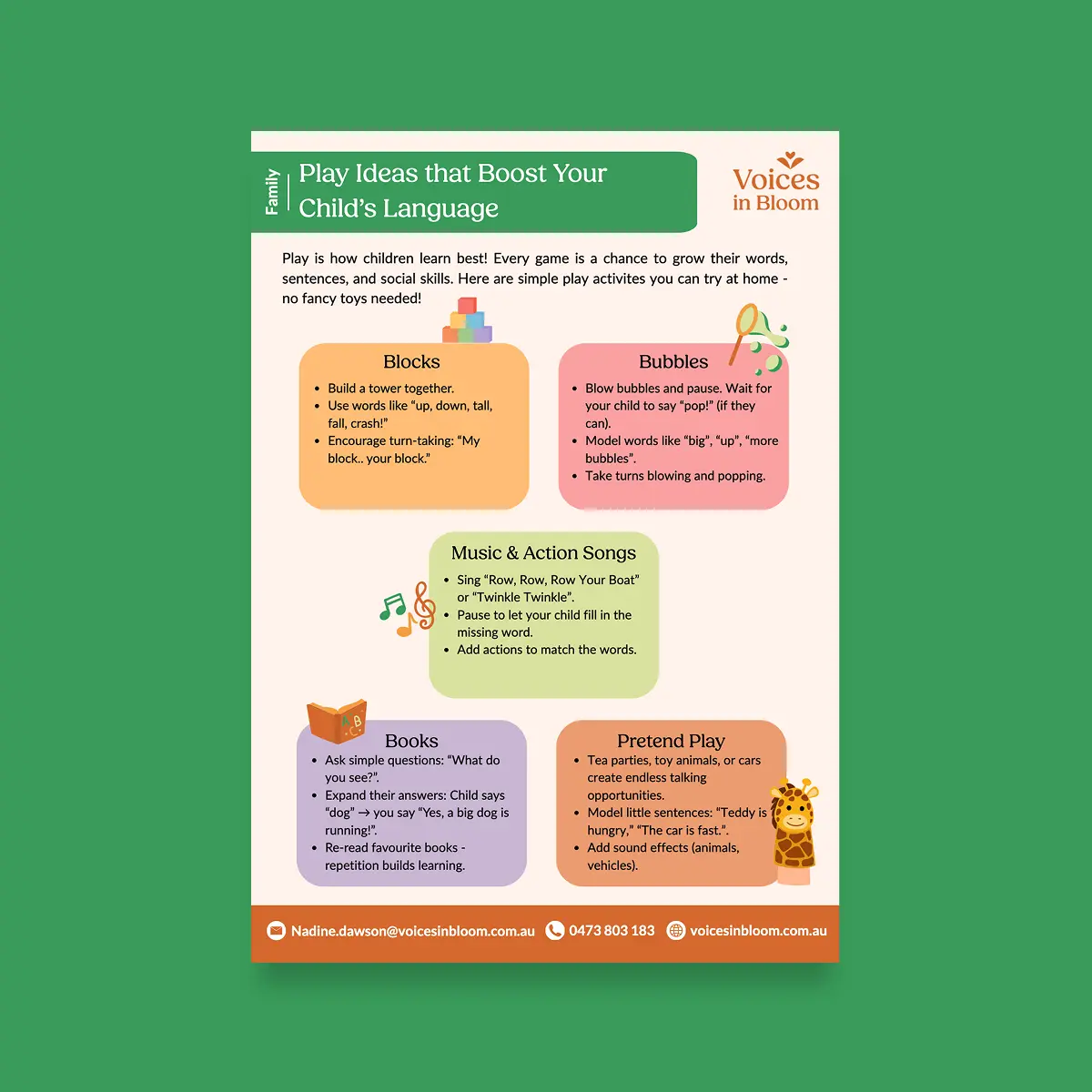At Voices in Bloom, we believe that empowering families with knowledge is just as important as the therapy itself. This space is designed to share trusted information, practical strategies, and links to help you support your child’s communication journey at home, school, and in the community.